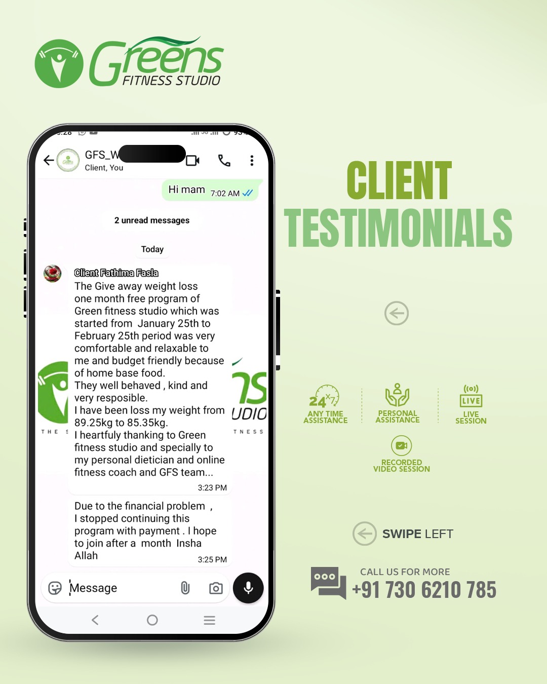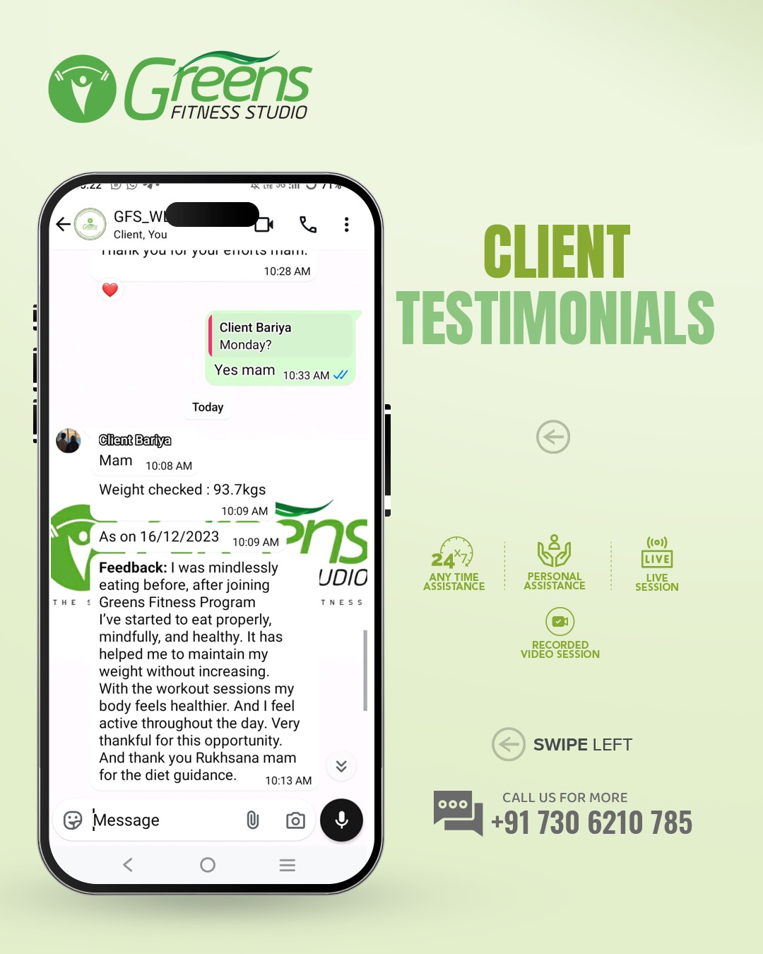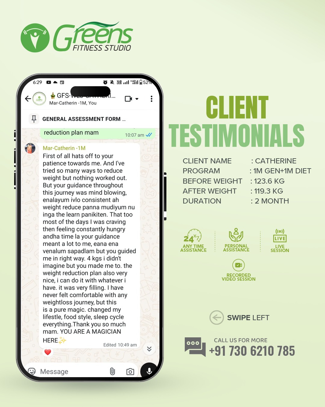 At Greens Fitness Studio, we don't believe in a one-size-fits-all approach. We understand that every individual has a unique story waiting to be sculpted. Hence, we personalize our fitness and dietary programs to cater to your specific demands, taking into account your personal habits, physical conditions, and medical history.